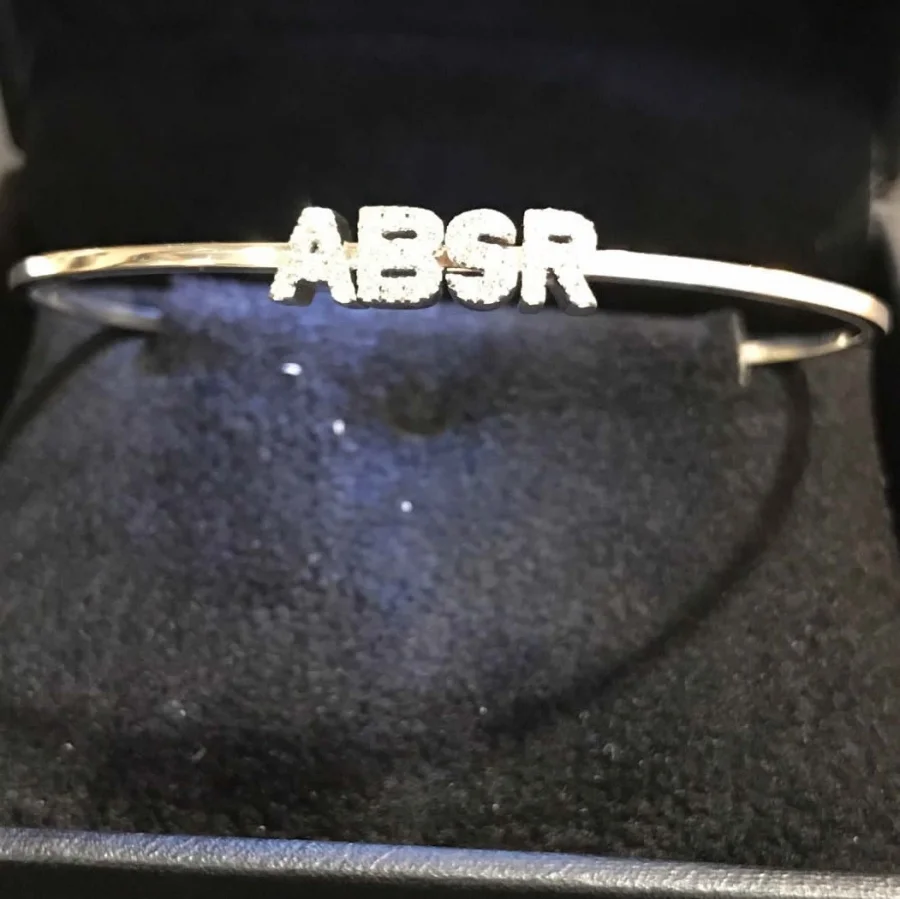 Pulsera esclava tubo en oro blanco macizo. Iniciales de brillantes con movimiento.